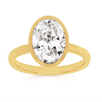 Eco-Brilliance® 3Ct Oval Center Bezel Set Lab-Created Diamond Engagement Ring In 14K Gold